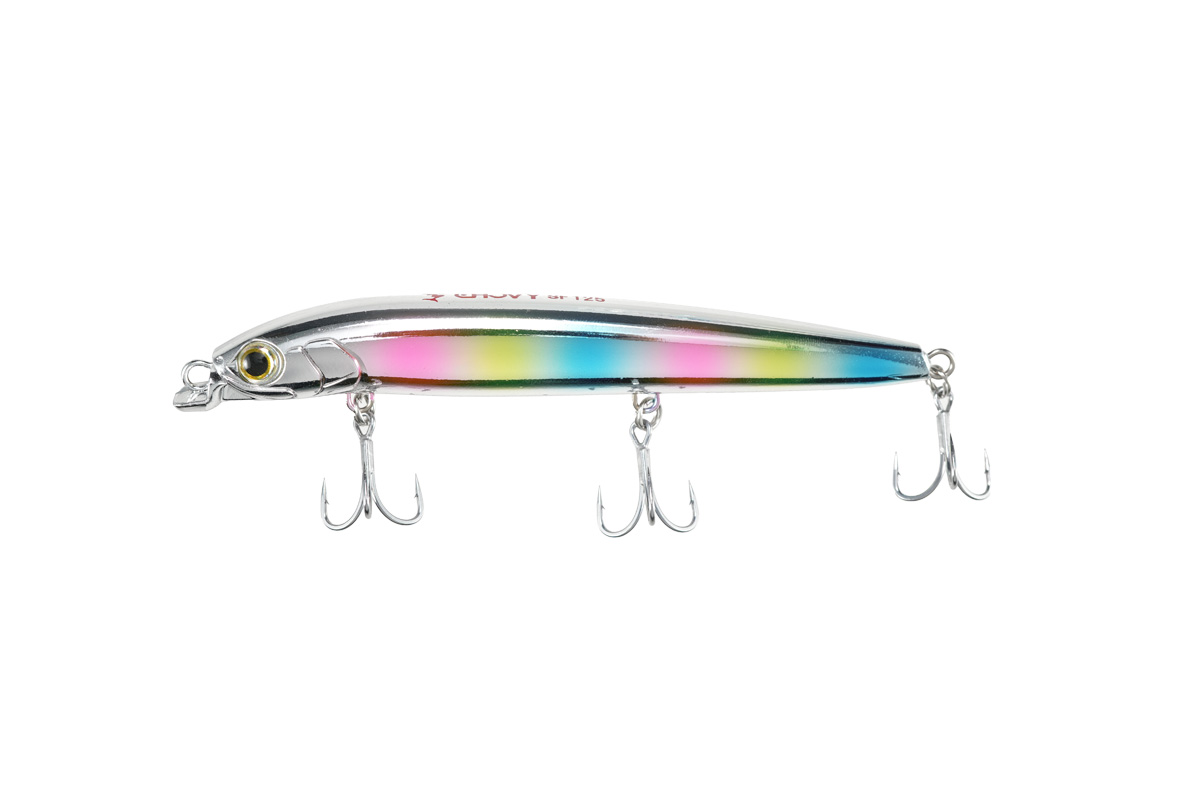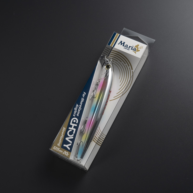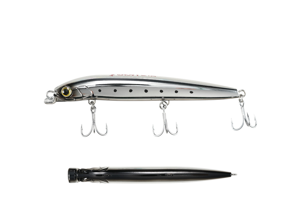 ロックショアの青物ゲームをリードするMariaから、同じ磯を舞台とするターゲット「ヒラスズキ」や「シーバス(磯マル)」に焦点を当て開発した、喰わせ特化型シャローランナー「CHOVY(チョビー)SF125」。